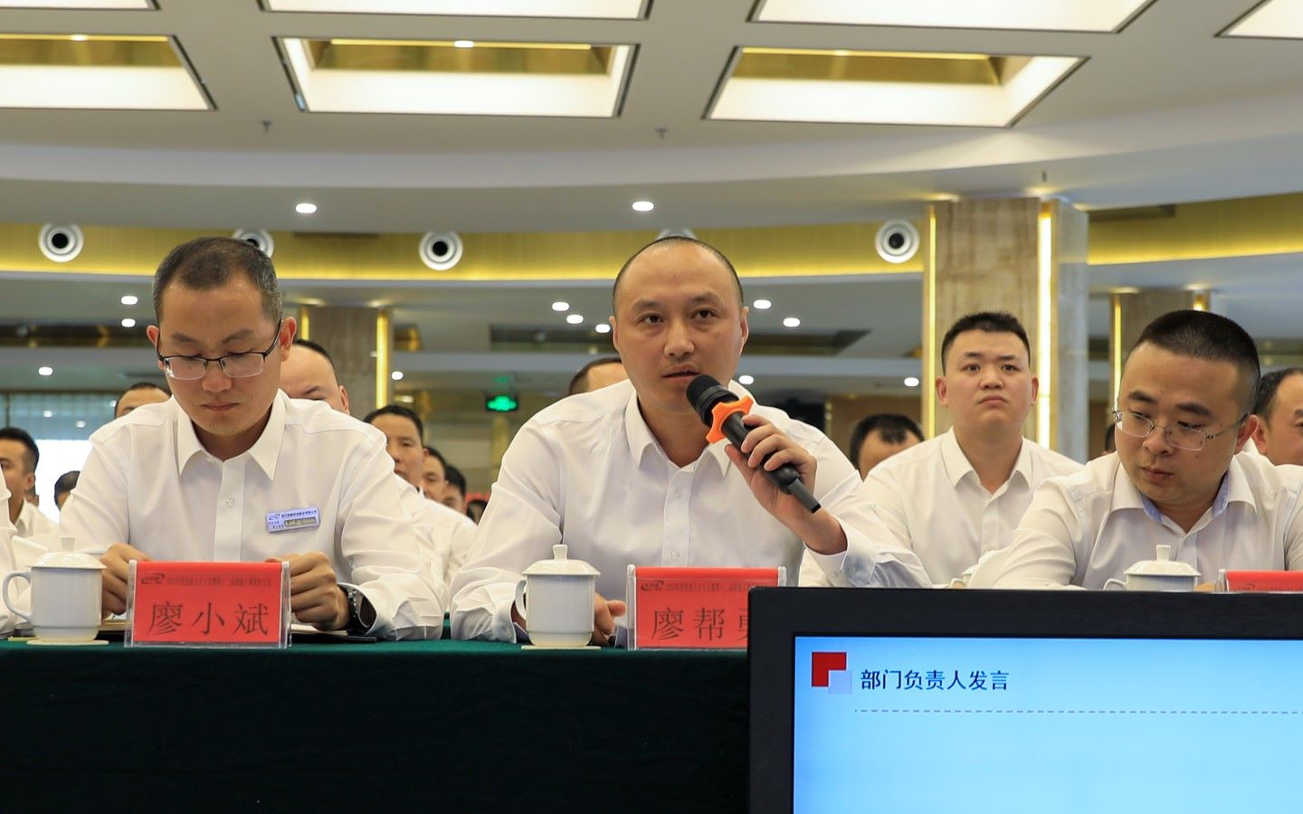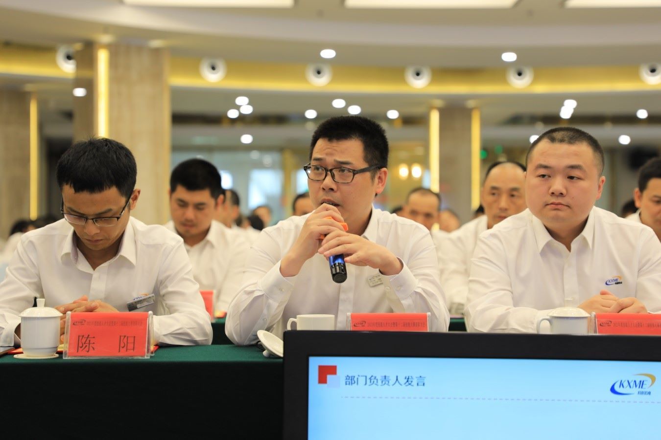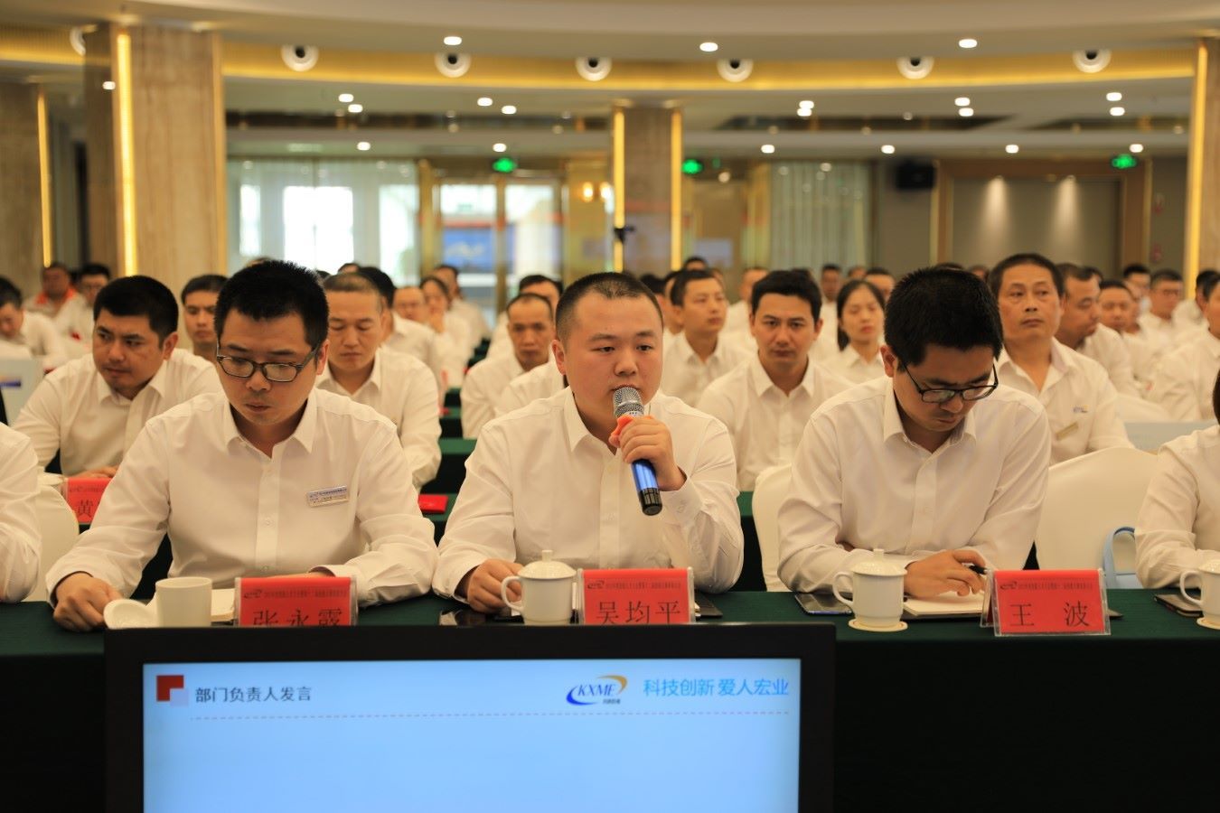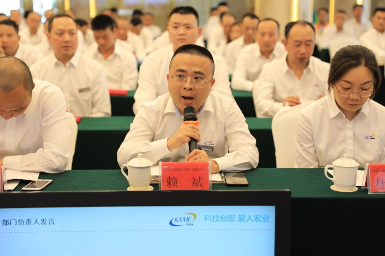 整场会议在激情昂扬的《PA电子之歌》歌声中拉开帷幕。按照会议流程,总经理助理刘君伟首先对召开大会的目的进行了介绍,刘总指出本次大会是为了进一步推动技能人才工作建设、表彰技能先进,激发技能人才的荣誉与担当,听取技能人才的宝贵意见及建议。