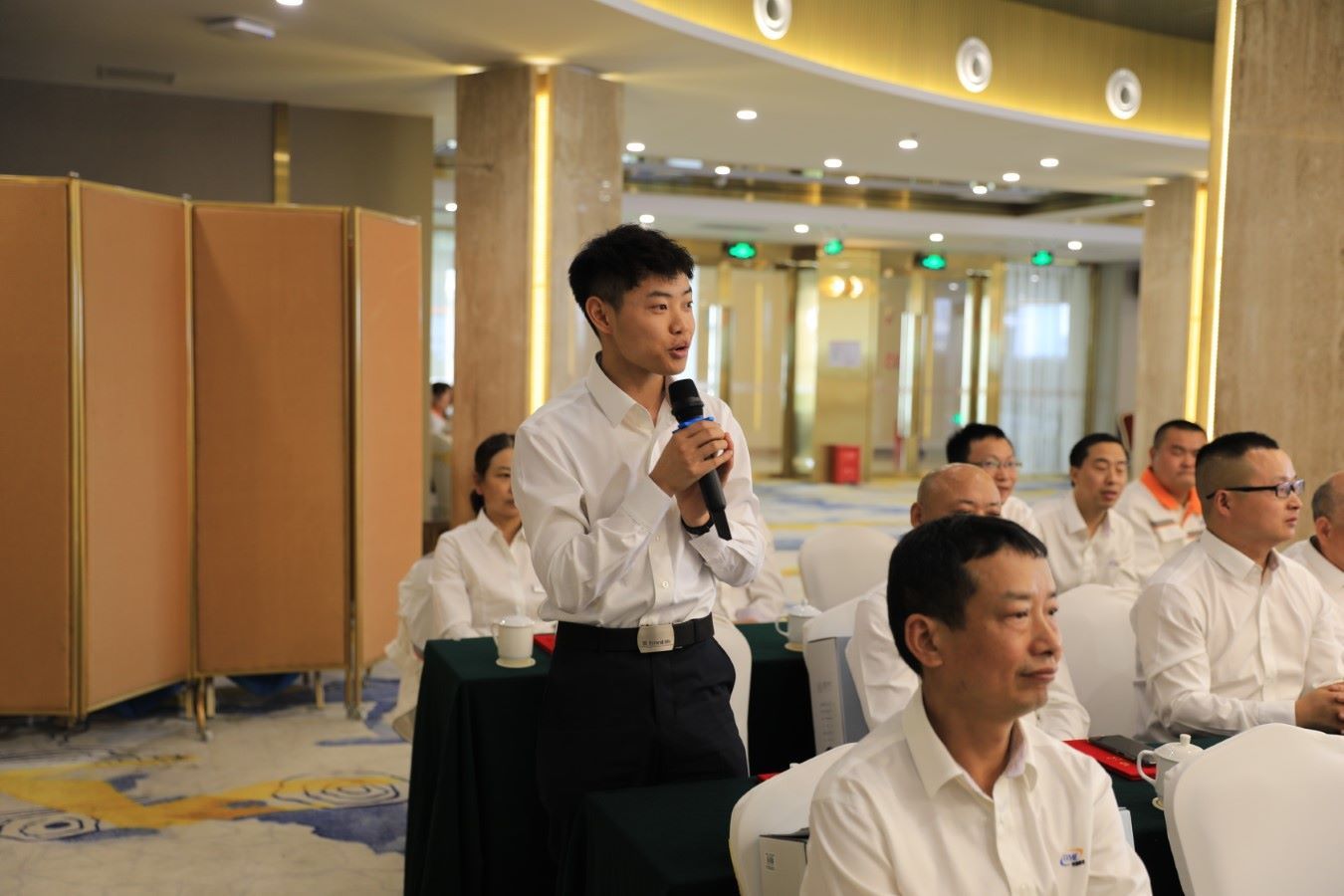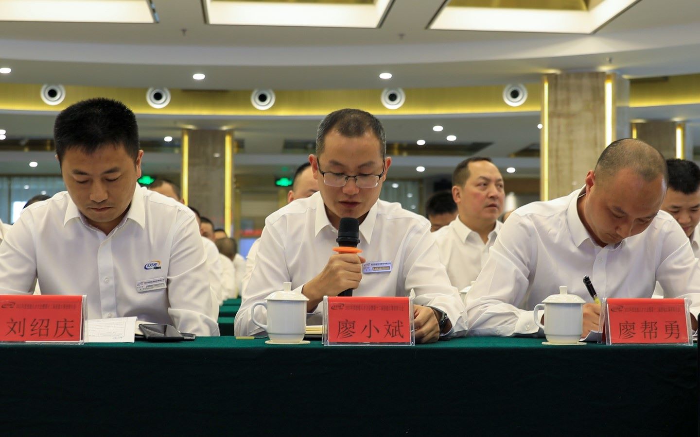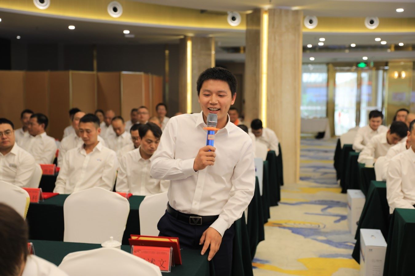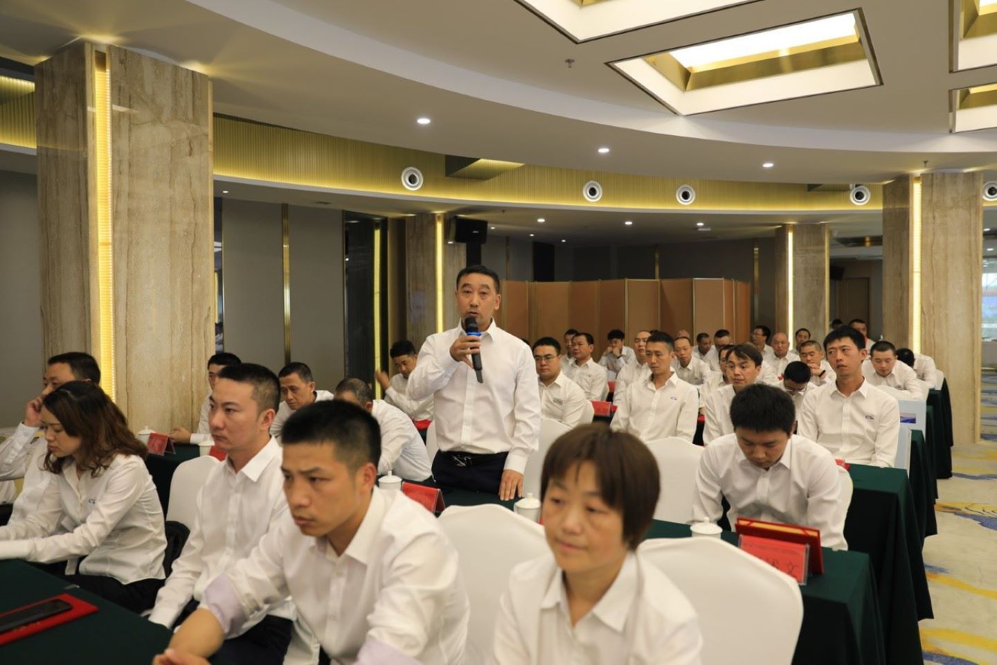最后,公司总经理助理刘总就技能人才大会做了总结性发言,整场大会在全体参会人员集体合影、就餐后顺利结束。