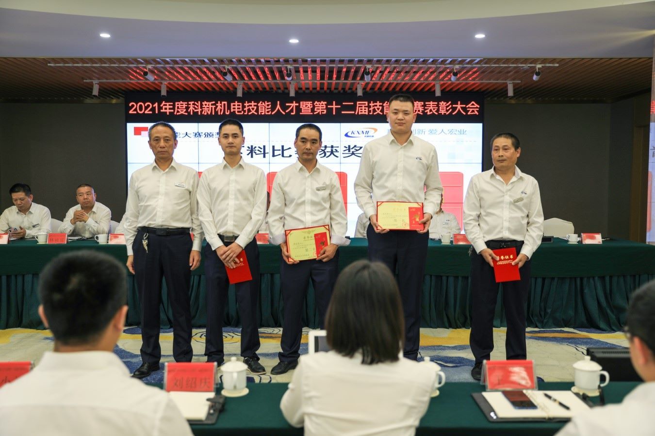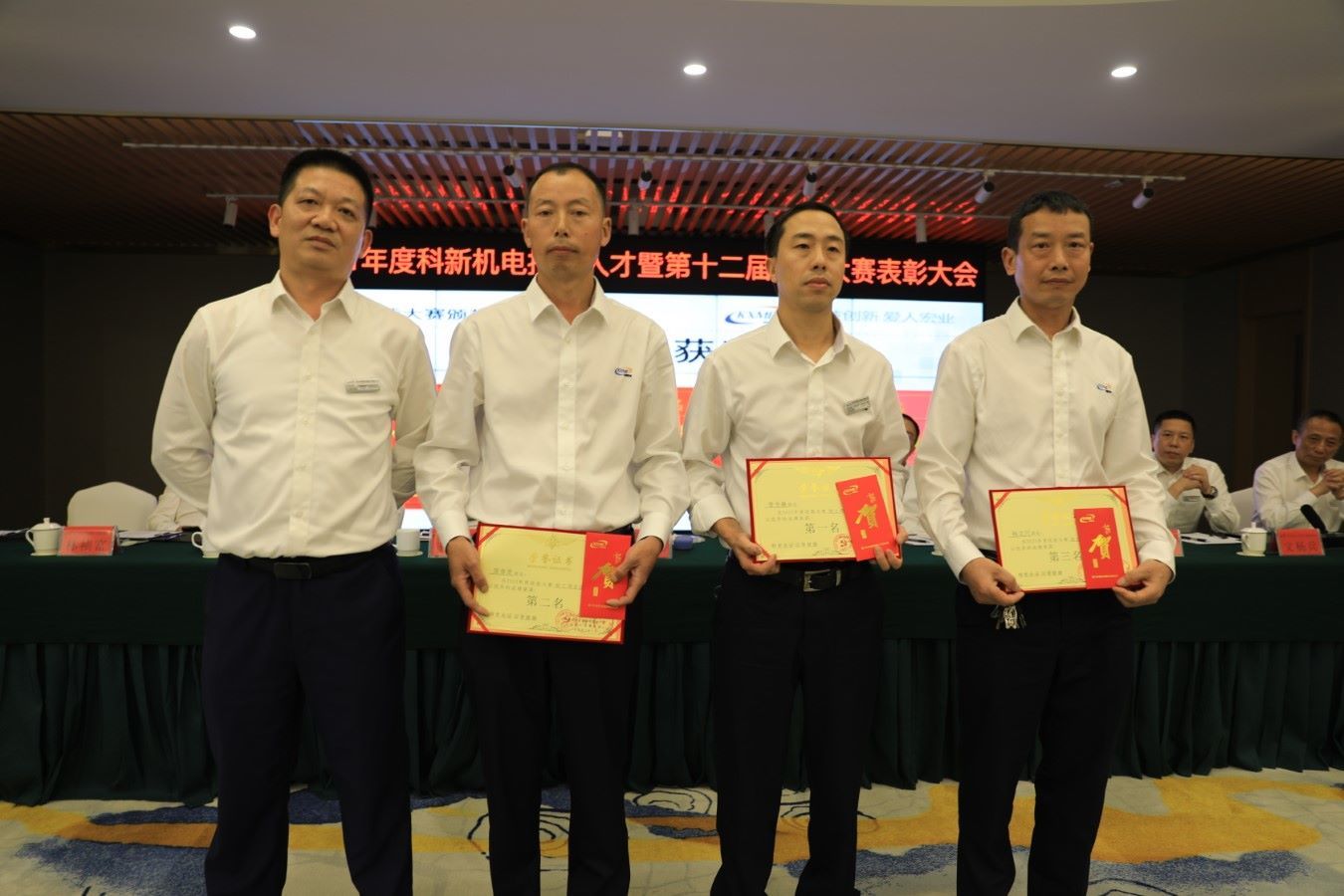 发言环节结束后,大会组织对4月刚结束的第十二届技能大赛进行了颁奖表彰仪式,公司参会领导分别为在大赛中的获奖人员进行了一一颁奖,并表示了祝贺和鼓励。颁奖项目涉及铆工、钳工、下料成型工、行车工、金加工、带极堆焊、自动氩弧焊、手工氩弧焊、焊工综合奖等十余个项目。