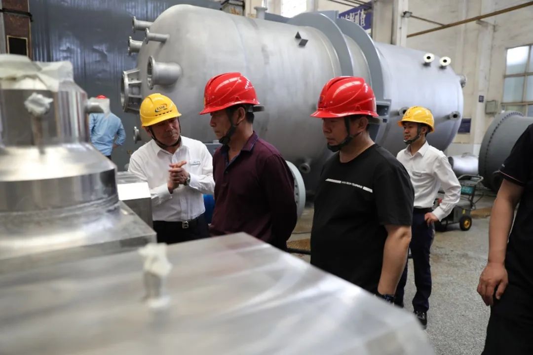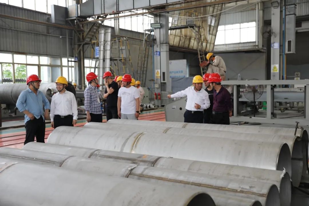 随后,董事长带领来宾们参观了生产车间,介绍了公司装备制造能力和在制项目产品生产情况。